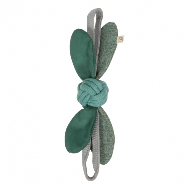 Das Hundespielzeug Jule von D&D HOME ist ein Knoten in einer Baumwollschnur mit Ringen und Ohren aus robustem Textilmaterial, das um die Kugel geschlungen ist. Die weichen Ohren unterhalten den Hund und machen ein beruhigendes Knackgeräusch, das zum Spielen verleitet. Dank der Handgriffe, ist das Jule Spielzeug perfekt zum Apportieren geeignet oder um mit einem zweiten Hund oder einem Betreuer zu spielen. Das andere Ohrenpaar ist aus einem widerstandsfähigen und eleganten Dekostoff.