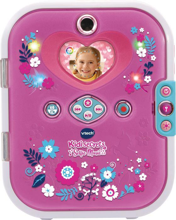 Elektronisches Tagebuch mit 2 Kameras, Gesichtserkennung und Leuchteffekten. Verschiedene LEDs auf dem Tagebuch sorgen für bunte Leuchteffekte. Platz für 750 Tagebucheinträge mit jeweils 250 Zeichen & 1 Foto: Es kann also mehr als 2 Jahre lang jeden Tag ein Eintrag gemacht werden. Eine Sprachnotiz aufnehmen und sie dem Tagebuch-Eintrag hinzufügen. MP3-Player: MP3 Dateien können per USB-Kabel (nicht inkl.) oder microSD-Karte (nicht inkl.) auf das Gerät geladen und abgespielt werden. MicroSD-Karten-Steckplatz zur Speichererweiterung und zur Speicherung von MP3-Dateien. Digitalkamera auf Border – & Rückseite. Foto-/Videoeditor für digitale Bildearbeitung.: Fotots und Videos aufmehmen sowie Stempe und Effekte hinzufügen. LCD-Farbdisplay (320 x 240). Sich um ein virtuelles Haustier-Einhorn kümmern, das mittels Gesichtserkennung reagiert und viele Personalierungsmöglichkeiten bietet. 10 tolle Spiele mit Inhalten zu Mathe, Logik u.v.m. Lustiger Stimmverzerrer. Styling Studio: mit einer Figur, die ein Foto als Gesicht hat, Outfits, Frisuren & Make-up ausprobieren. Datum- und Uhrfunktion mit Weckeer. QWERTZ-Tastatur. Mit USB-Anschluss für die Verbindung zum PC und Übertragung der Fotos und MP3-Dateien (USB-Kabel nicht inkl.). Integrierter Lautstärkeregler. Kindersicheres Batteriefach und Abschaltautomatik. Demobatterien sind enthalten. Ab 6 Jahren.