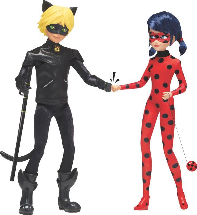 Ein 26 cm großes Puppenduo in Superhelden-Outfits (Ladybug und Cat Noir), um die Abenteuer der Miraculous-Serie nachzuspielen. Ab 4 Jahren.
