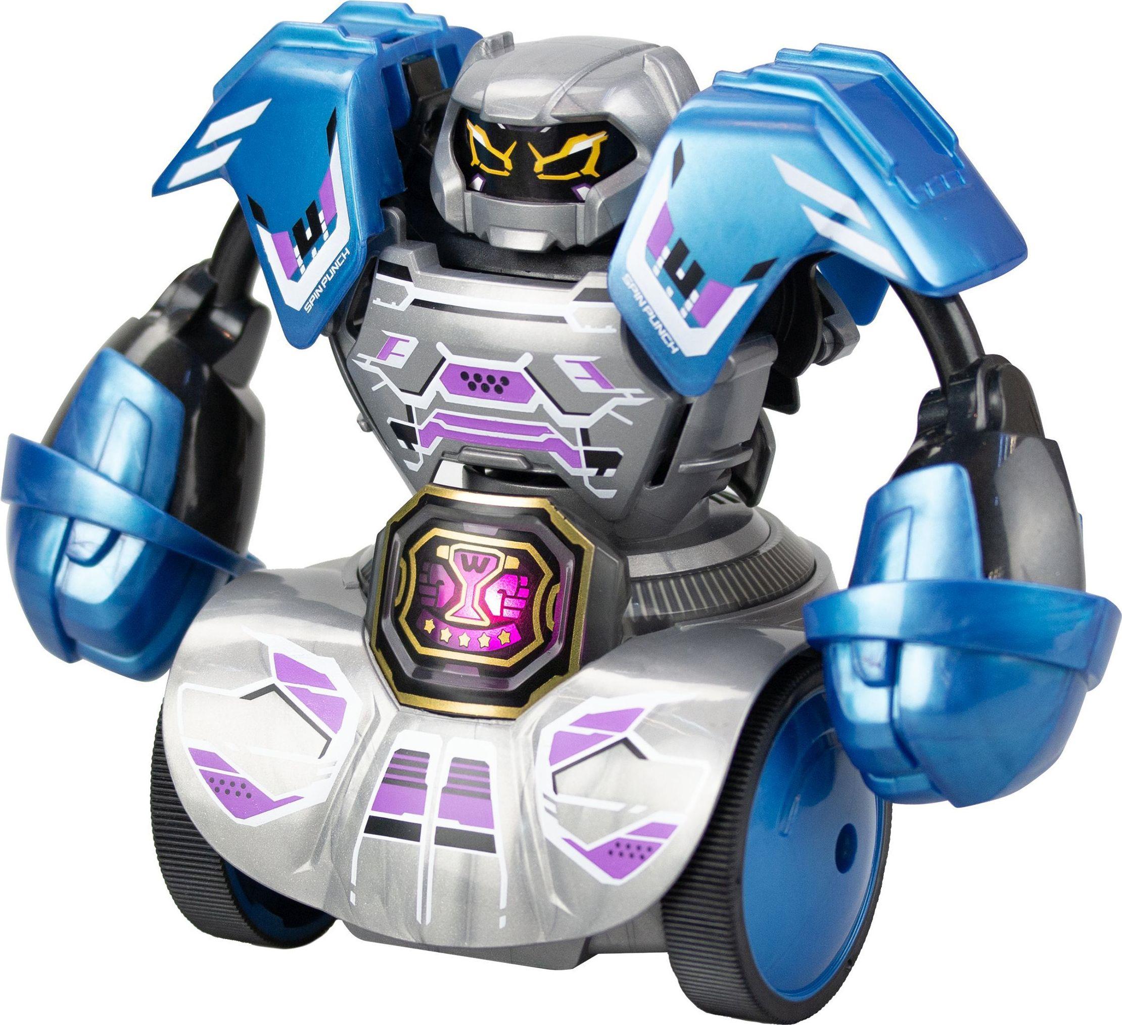 Kombat Tornado Roboter. Kämpfen, noch mehr kämpfen! Kombat 2.0 Roboter sind da! Eine revolutionäre neue Art, mit kraftvollen 360°-Schlägen zu kämpfen. Ziele auf das Herz deines Gegners und zerschmettere seine Rüstung, um ihn auszuschalten! Aber Vorsicht vor der Gegenreaktion mit dem verheerenden neuen „Tornado“-Feature. Die Steuerung der Roboter erfolgt über ihre Infrarot-Fernbedienungen. Ihre LED-Augen leuchten auf und sie machen Geräusche, wenn sie klopfen! Möglichkeit, mit bis zu 4 Spielern gleichzeitig zu spielen. Das Paket enthält 2 ferngesteuerte Roboter und 2 ferngesteuerte Roboter. Ab 5 Jahren. Betrieb mit 6 „AA“-Batterien (Roboter) und 4 „AAA“-Batterien (Fernbedienung) nicht im Lieferumfang enthalten.